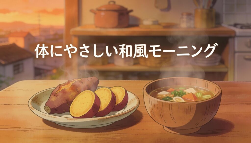 焼き芋・ふかし芋と、ぺぷちっこで作った具だくさん味噌汁やスープを合わせれば、パンやバターに頼らない、やさしい和風モーニングになります。